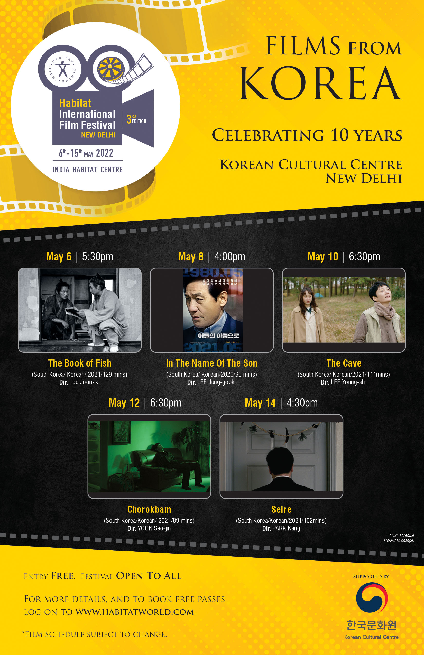 Hwang Il-yong, Director of the Korean Cultural Centre India, said, "Habitat International Film Festival is one of those few events in New Delhi where you can enjoy art films. In particular, this year, in commemoration of the 10th anniversary of the opening of the Korean Cultural Centre, we think it is a great honour to be able to screen 5 Korean films at this prestigious Film Festival. Just as Korean Wave content resonated greatly in India, we hope that, through this event the audiences would be able to appreciate the artistic values of these independent films."