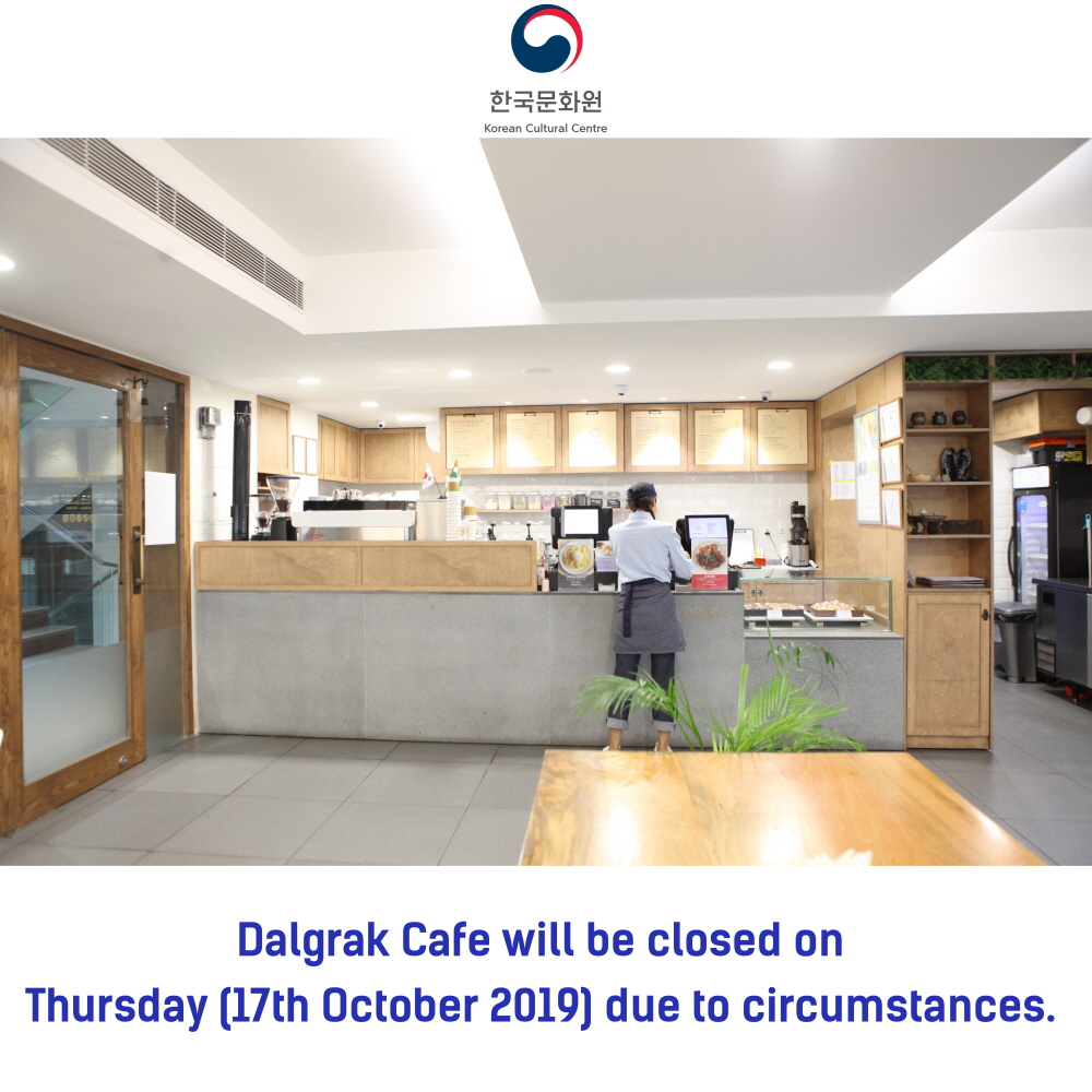 We announce that DALGRAK (KCC Cafe) will be closed on 17th October(Thursday) due to circumstance.